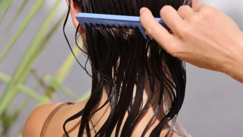 إضافة الماء: يساعد الزيت على مقاومة الجفاف المعتاد للشعر المجعد. يلعب زيت بذور الكتان، بفضل غناه بالأحماض الدهنية الأساسية، دورًا حاسمًا في الترطيب العميق للشعر. عند وضعه، فإنه يتغلغل في ألياف الشعر، مما يوفر ترطيبًا طويل الأمد ويمنع الجفاف.